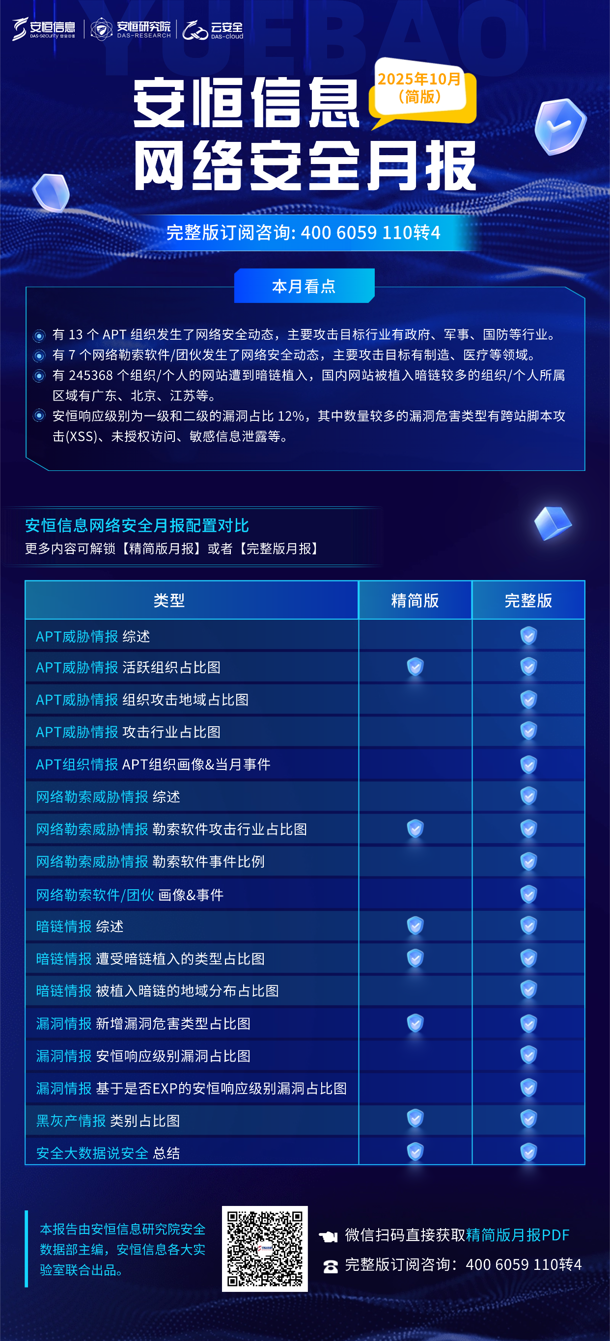 【安全资讯】【文末精简版PDF下载】《2025年10月安恒信息网络安全月报》