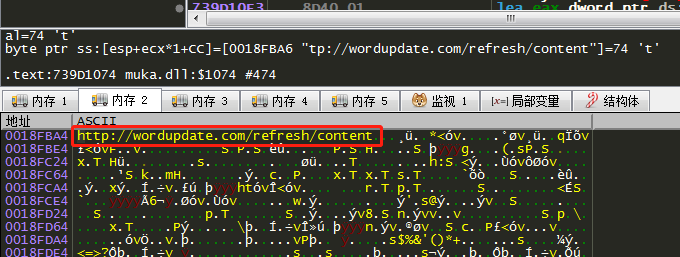 随后在temp目录下释放下载器(muka.dll),并通过内嵌地址:http://wordupdate[.]com/refresh/content从服务器下载加载器(new.exe)保存到" C:\intel "路径下。